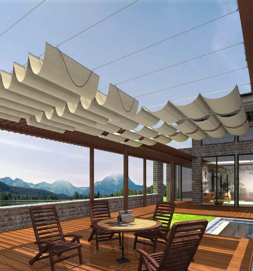 1. Awnings: Transform your outdoor spaces with our stylish awnings and canopies. They not only provide effective protection from sun and rain but also enhance the aesthetic appeal of your property. We offer systems like Exterior Roman Wire Guides and Skyblind for added functionality and design elegance.